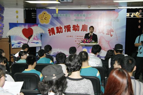 广州市残联副理事长傅蝶在启动仪式上希望通过主办单位搭起的这座爱心桥梁,社会各界热心人士继续能秉承和发扬中华民族扶残助残、助人为乐的传统美德,彰显爱心广州,关心和支持这项公益事业。让大家的爱去感动每个残疾儿童及其家庭。