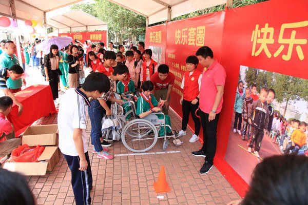 同时爱心公园南门广场还设置了多种适合残疾儿童参与的趣味游戏。让孤残儿童和市民一起参与社会融合,让孤残儿童亲近了解广州市的人文景观。