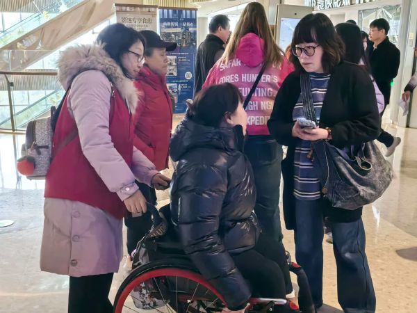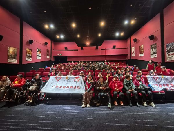 在工作人员和志愿者的帮助和陪伴下,残疾朋友们顺利到达影院,井然有序地观看完整场电影。